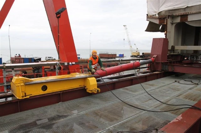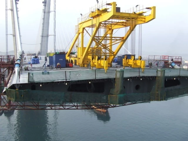 Для оснащения сборочного стапеля сборки металлической балки жёсткости и перегрузки на плавсредства. Система применяется при строительстве мостового перехода на о. Русский через пролив Босфор Восточный.