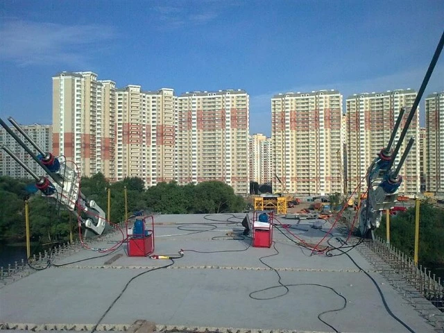 Гидравлическое мостостроительное оборудование «ИрГидроМаш», использовавшееся при строительстве вантового моста на о. Русский во Владивостоке.