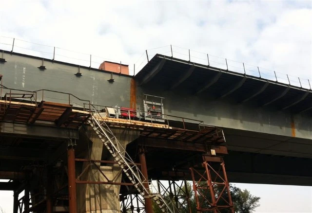 Гидравлические установки «ИрГидроМаш» на основе домкратов натяжителей-экстракторов были применены для продольной надвижки металлических пролётных строений при строительстве мостового перехода через бухту Золотой Рог в г. Владивостоке.