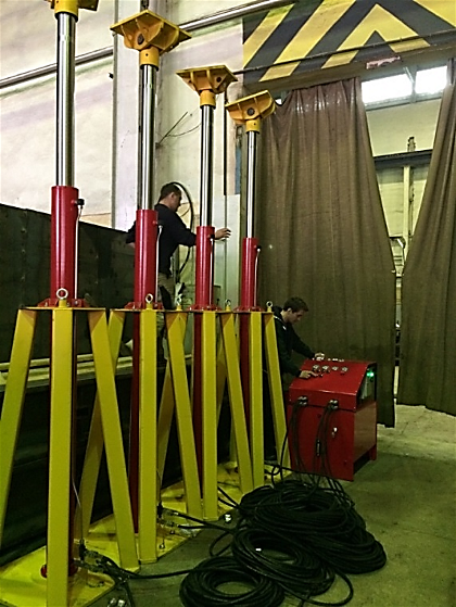 Система стоек домкратных с развиваемым усилием одиночной стойки 15 тс, ходом поршня 1800 мм. предназначена для управляемого подъема и опускания грузов с высокой степенью точности при высоте подъема до 5768 мм.