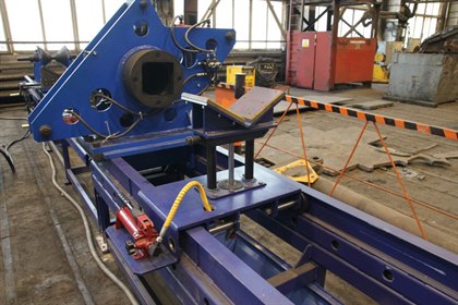 - подвижными регулируемыми опорными элементами для укладки гильзы гидроцилиндра (поперечная регулировка, вертикальная регулировка) и ее продольного перемещения вдоль рамы стенда при разборке и сборке гидроцилиндра. Предусмотрена фиксация гильзы на опорном элементе прижатием грузовым ремнем или цепью;