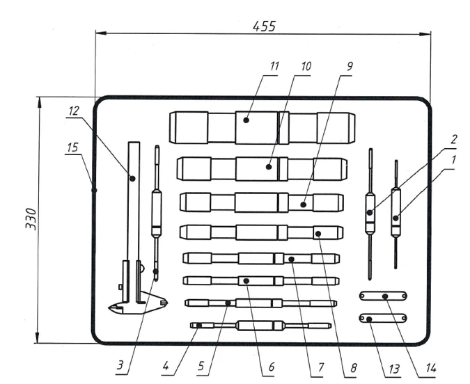 Предельный калибр представляет собой бесшкальное средство измерения, конструкция которого включает два типоразмера. Эти размеры соответствуют наибольшему и наименьшему допустимому внутреннему диаметру обжатого фитинга (проходная и непроходная стороны). В комплекте содержатся все необходимые измерительные инструменты для опрессовочного участка. Применение предельных калибров гарантирует высокое качество обжима и позволяет выполнять контроль без привлечения персонала высокой квалификации.