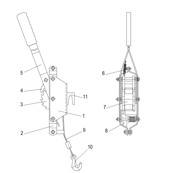 Тяговый элемент представлен стальным канатом длиной 1400 мм с крюком, оснащенным предохранительной защелкой для предотвращения соскальзывания груза. Все подвижные узлы механизма защищены от коррозии и рассчитаны на эксплуатацию в условиях открытого воздуха при температурах до +40°C. Компактное исполнение и малый вес позволяют использовать люкоподъёмник как основное переносное средство для мобильных ремонтных бригад.