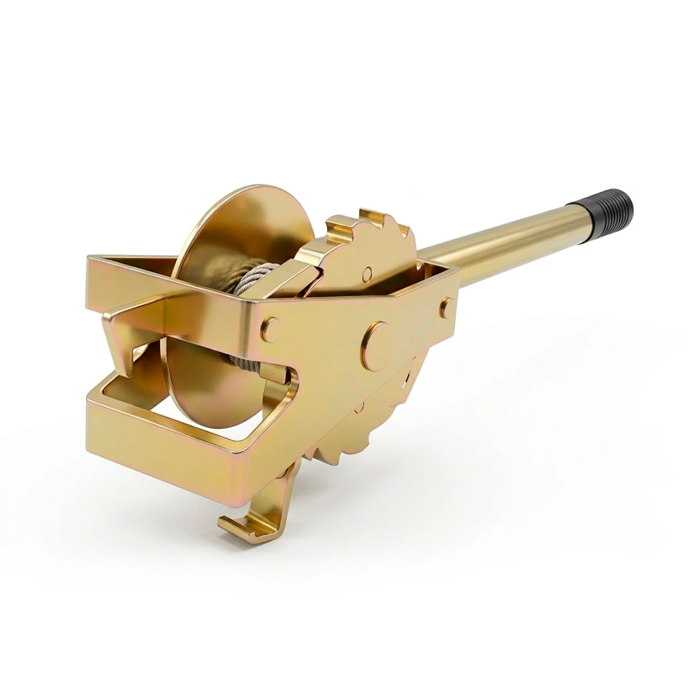 Конструкция включает в себя стальной корпус с интегрированной катушкой для троса и эргономичную рукоятку, передающую усилие на храповик. Использование двойного стопорного механизма позволяет фиксировать люк под действием собственного веса в любой точке подъёма, гарантируя безопасность проведения работ. Для удобства монтажа на подвижной состав устройство укомплектовано специальным фиксирующим крючком