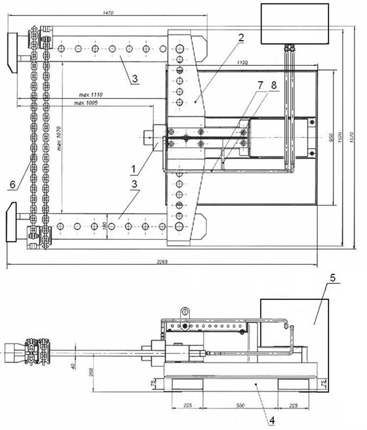 Траверса (2) и насосная станция (5) установлены на раме (4).