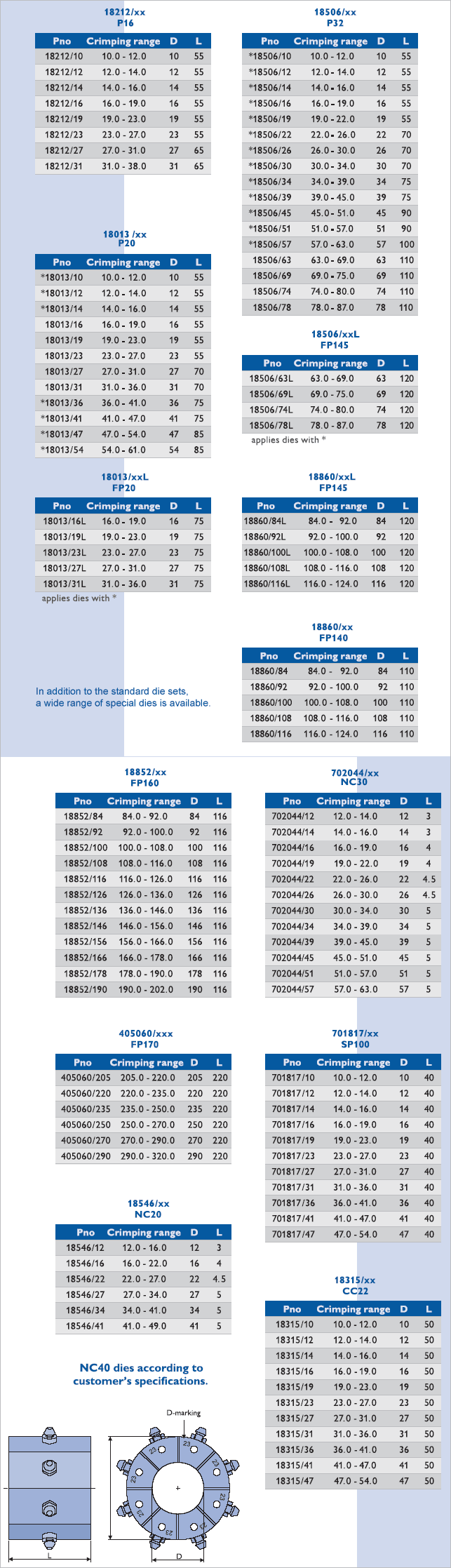 Во многих случаях стандартные кулачки не могут обеспечить получения желаемых результатов при производстве рукавов высокого давления. Для таких случаев компания Lillbacka Powerco Oy разрабатывает и производит специальные инструменты, спроектированные в соответствие со специфическими требованиями заказчика.